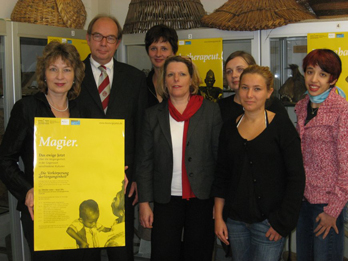 Zwei Bilder von der Pressekonferenz, die am 16. Oktober 2007 im Institut für Ethnologie stattfand: