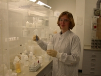 Für die Simulation natürlicher Prozesse wurden in der Mineralogie experimentelle Techniken entwickelt, um Druck- und Temperaturbedingungen, wie sie im Erdinnern herrschen, im Labor zu simulieren. Weiterhin werden modernste Methoden und Verfahren aus der Chemie und der Physik für mineralogische Fragestellungen angepaßt. Die durch das Studium natürlicher Materialien gewonnenen Erkenntnisse finden ihre technologisch und wirtschaftlich Anwendung in Bereichen wie der Materialkunde, der Rohstoffsicherung und -verarbeitung, der umweltschonenden Wiederverwertung oder Entsorgung von Materialien sowie der Entwicklung neuer Werkstoffe und Analyseverfahren. | ![]() |