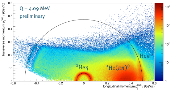 Mit Hilfe dieses Reaktionskanals lässt sich die Wechselwirkung zwischen η-Mesonen und ³He-Kernen untersuchen. Bisherige Analysen unserer Arbeitsgruppe zeigten, dass sowohl der totale als auch der differentielle Wirkungsquerschnitt von besonderem Interesse sind, weil diese nahe der Produktionschwelle stark von einem reinen Phasenraumverhalten abweichen.