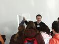 Gespannt warteten die 6 Oberstufenschüler des Rats-Gymnasiums zusammen mit ihrer Lehrerin Frau Ute Luft auf ihren Einsatz: um 10:15 Uhr sollte sie beginnen, ihre Physikshow „Von Pisa bis Plasma“- eine Reise durch die Geschichte der Physik, bespickt mit zahlreichen spannenden und unterhaltsamen Experimenten.