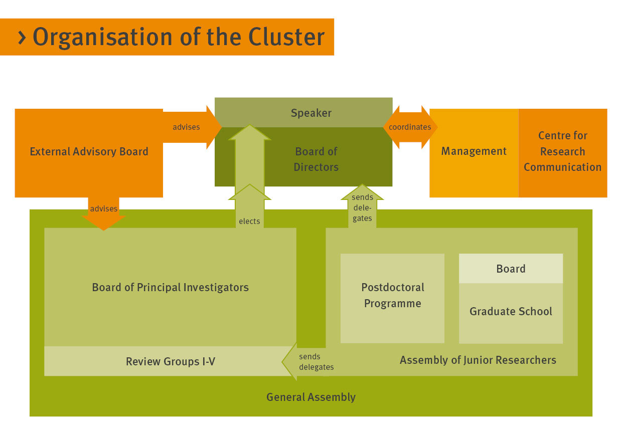 The members of the Cluster of Excellence convene for a full meeting once every semester in order to discuss their research agenda and common activities. An advisory board, consisting of internationally renowned figures, gives scientific advice to the cluster and makes recommendations for its further work.