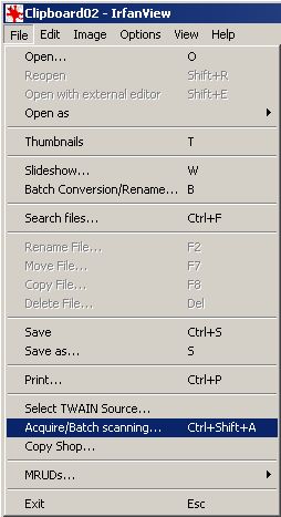 Nun wählen Sie 'Acquire/Batch scanning' bzw. bei aktivierter deutscher Sprache 'Scannen/Batch-Scannen' im File-, bzw. Datei-Menü aus. Klicken Sie in dem darauf öffnenden Fenster auf OK.