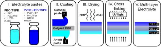A soild electrolyte (SE), which has been invented in MEET/HI MS will be used in a NMC cell. The build-up of the electrolyte can be seen in figure 1. The goal of the work will be to incoorperate the SE in the cathode material and the optimization of the SE. The work includes also a collaboration with the US and Japan.