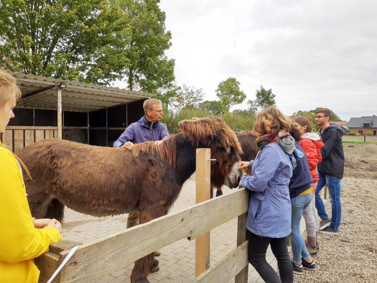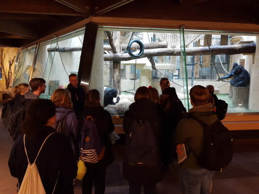 Auch die tierische Bioinspiration unter Leitung von Dr. Reiner Hagencord vom Institut für Theologische Zoologie hat sich bei den Studierenden bewährt. Mit einer Gruppe Studierender verschiedenster Fachrichtungen ging es am Freitagnachmittag in den Zoo und am Samstag zum Haus Mariengrund. Sei es beim Beobachten der Sozialstrukturen der Erdmännchen, des monotonen Auf- und Ablaufens des eingesperrten Leoparden oder beim Wahrnehmen und Streicheln der pubertierenden Esel Freddy und Friedolin, stets begleitet uns der Gedanke von Elias Canetti: "Mit zunehmender Erkenntnis werden die Tiere den Menschen immer näher sein, wenn sie dann wieder so nahe sind wie in den ältesten Mythen wird es kaum mehr Tiere geben."