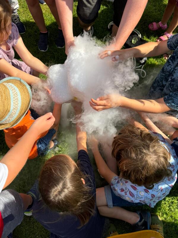 Parallel dazu umfasste das niedrigschwellige und vielfältige Mitmach-Programm u.a. Experimente zur Urknallmaterie und ihrer Zusammensetzung von Prof. Klein-Bösing über die Berechnung von Planetenbahnen und Mikrometeoriten-Mikroskopie sowie Sonnenbeobachtungen mit speziellen Teleskopen und einem astronomischen Basteltisch der Sternfreunde Borken. Den Höhepunkt des Programms bildete der Planetenweglauf von der Sonne bis zum Mars, an dem 94 kleine Astronauten und Astronautinnen teilnahmen und nach Erreichen des Zielplaneten Mars mit thematisch passenden Preisen belohnt wurden.