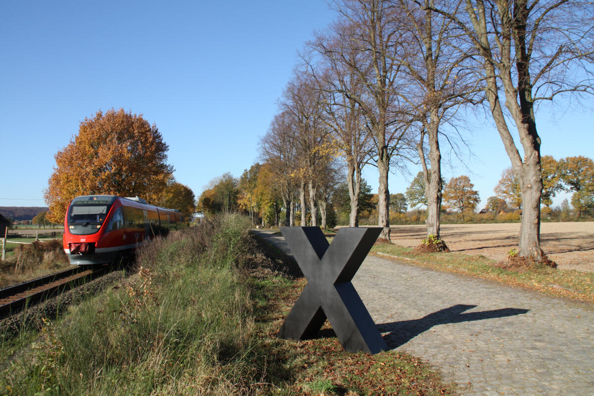 Die Fotoausstellung „x_Orte“ des Münsterlandes zeigt Orte, die gar nicht oder nicht auf den ersten Blick erkennbar sind. Manchmal sind ganz bewusst so angelegt, manchmal in Vergessenheit geraten und teilweise verwittert. Das Team der Expedition Münsterland hat diese Orte sichtbar gemacht und sie mit einem dreidimensionalen schwarzen X fotografiert, um den Betrachter darauf aufmerksam zu machen. So sind beispielsweise vom Bahnhof Tilbeck nur noch vereinzelte Spuren zu erkennen. Ein drei mal sechs Meter großer gepflasterter Bereich zeugt von seiner Existenz. Die Opfer- und Nagelungsstelle am Horstmarer Landweg in Münster, das ehemaliges Flüchtlingslager in Lette, die Mergelhalde in Gievenbeck und der Schacht Romberg in Werne sind nur einige weitere der vielen weiteren Beispiele für Orte im Münsterland, mit denen sich die Expedition Münsterland durch das künstlerische Element auseinandersetzt. Das X nimmt sich dieser Orte an, über die oftmals, im wahrsten Sinne des Wortes, Gras gewachsen ist und macht damit nicht nur auf sie selbst, sondern auch ihre Geschichte aufmerksam, um sie in das Bewusstsein der Menschen zurückzuholen und somit einer Erosion des Vergessens zuvor zu kommen. Die Ausstellung war bereits im Bioenergiepark in Saerbeck, auf der Burg Vischering in Lüdinghausen, in der Bezirksregierung Münster und im Haus der Wissenschaft in Darfeld zu sehen.
