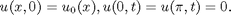 We examine a heat problem in 1D. Assume that a rod with given temperature distribution u_0(x) is cooled to temperature 0 on the exteriors at 0 and pi. Assume that u(x,t) for the Temperature at point x and time t satisfies the Heat equation