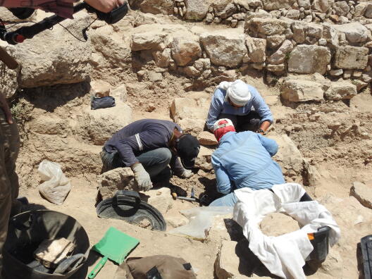 Earlier excavations at the site have already produced important results on its Iron Age and Hellenistic occupation. Between 1968 and 1973, excavations revealed four double-faced female stone heads that had been reused in a later water channel but originally belonged to an Iron Age sculptural tradition. Further excavations carried out between 1987 and 1991 revealed parts of a large monumental building dating to the 7th century BCE. This only partially excavated structure included a paved central courtyard, adjacent rooms with plastered walls, and even a stone toilet seat—an architectural feature otherwise known only from elite residences. Luxury objects such as glass vessels, ivory and glass inlays, and fine ceramics further point to the presence of a high-status building.
