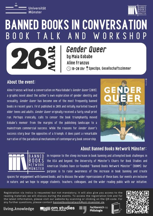 26 March, 18:00-20:00, SpecOps: Aline Franzus will lead this discussion about Gender Queer by Maia Kobabe (2019).