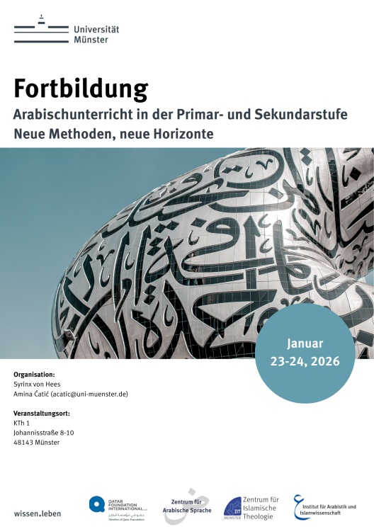 Das Zentrum für Arabische Sprache (ZAS) organisiert am 23.–24. Januar 2026 an der Universität Münster eine Fortbildung zum Thema „Integration arabischer Dialekte in den Arabischunterricht“.