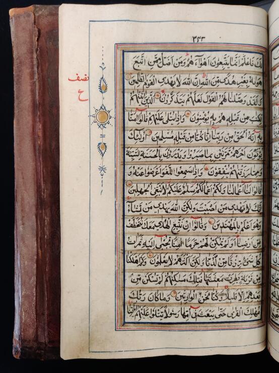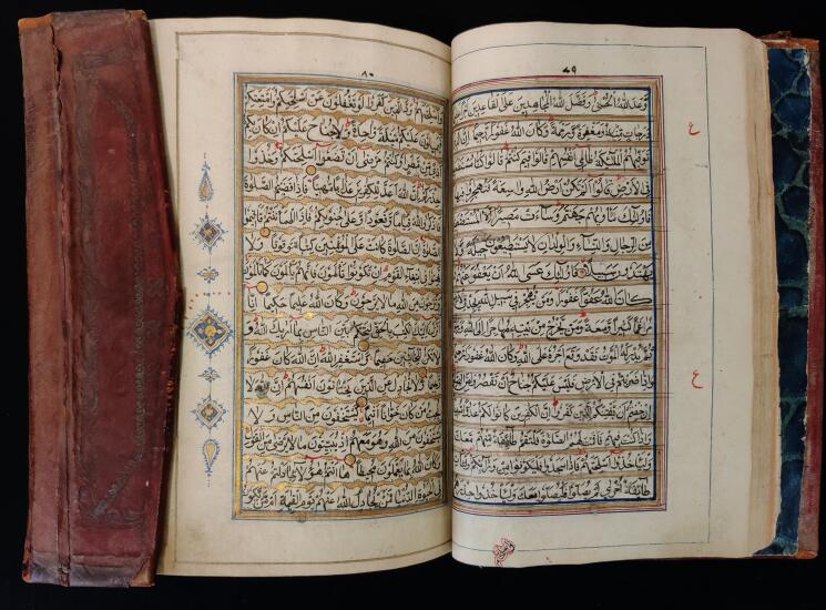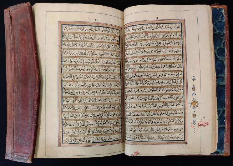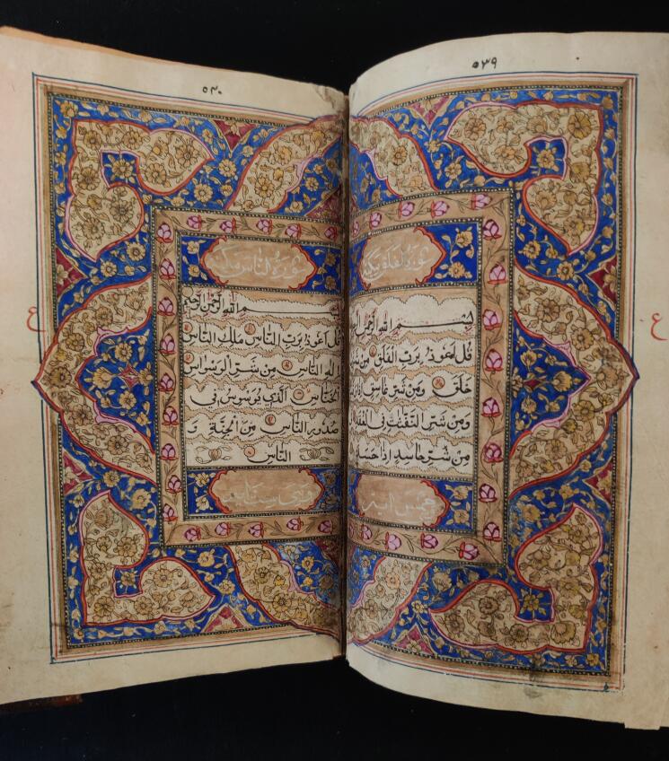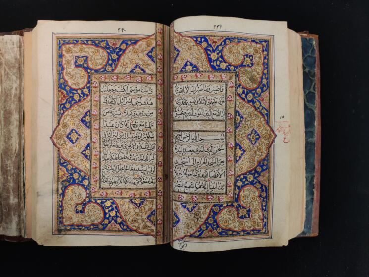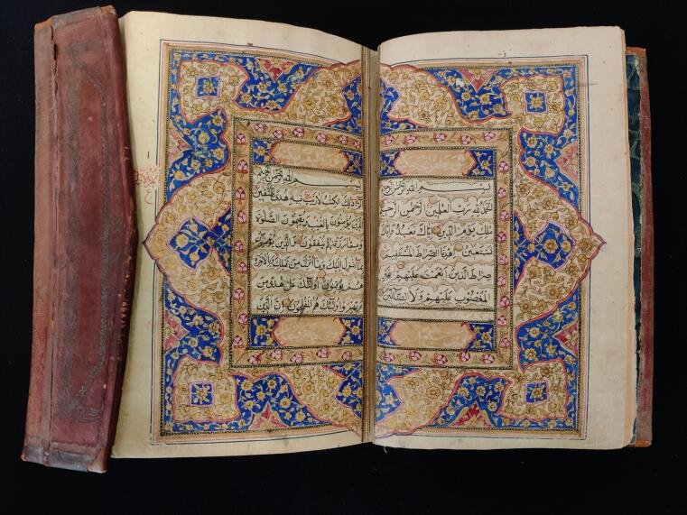 Illumination: erste, mittlere und letzte Doppelseite des Korans sind aufwändig illuminiert