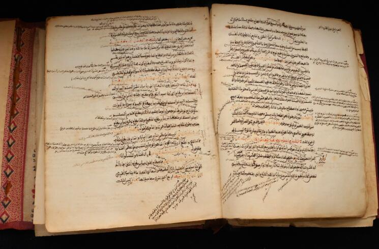 Im Haupttext kommentiert at-Taftāzānī einen anderen Klassiker der Rhetorik, Ḫaṭīb Dimašq al-Qazwīnī, der ebenfalls aus Persien stammte. Die kommentierten Stellen sind in roter Tinte geschrieben, sodass man beide Texte gut auseinanderhalten kann. Auch das Werk at-Taftāzānīs ist bis heute Objekt zahlreicher weiterer Kommentare aus verschiedenen Winkeln der islamisch geprägten Welt, von Pakistan über die Levante bis nach Marokko, wo diese Kopie angefertigt wurde.