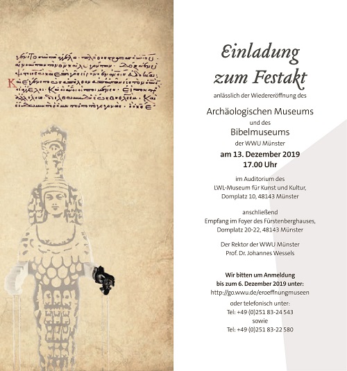 Am Freitag den 13.12.2019 werden das Bibelmuseum und das Archäologische Museum der WWU wiedereröffnet!