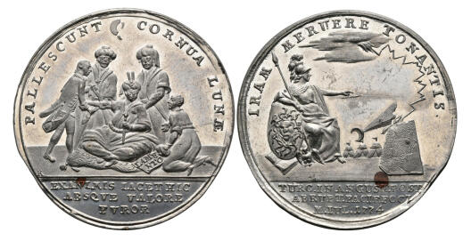 Kein Zahlungsmittel, sondern Propaganda ist unsere Münze des Monats im Oktober. Die Spottmedaille auf die Verluste der Türken im Frieden von Küçük Kaynarca 1774 erinnert an einen heute fast vergessenen Konflikt, einen sechsjährigen Krieg zwischen dem Osmanischen Reich und Russland, den der Zar letztendlich gewann.