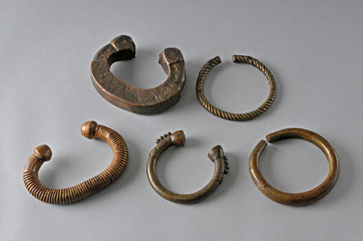 Schwere hufeisenförmige Metall-Armreifen, die sogenannten Manillen, waren vom 16. bis ins 20. Jahrhundert Zahlungsmittel, Brautpreise und Grabbeigaben in verschiedenen westafrikanischen Staaten. Doch hergestellt wurden die bis zu 14 Kilogramm schweren Schmuckstücke aus Kupfer, Bronze oder Messing gar nicht in Afrika, sondern wurden von den Portugiesen importiert, um Gold und Elfenbein, hauptsächlich aber Sklaven, die sie dann nach Amerika verschifften, zu kaufen. So wurden die Manillen ein Synonym für "Sklavengeld". Ausführliche Informationen zu diesem düsteren Kapitel der Kolonialgeschichte finden Sie auf den Seiten der "Numismatik in Münster".