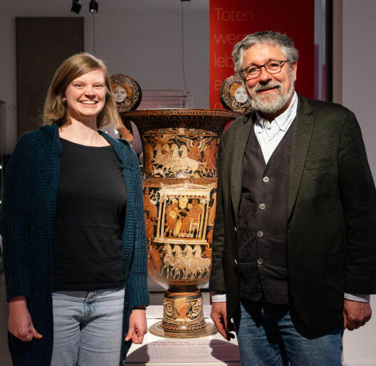 Das Sterben und Wiederauferstehen in antiken Myterienkulten steht im Mittelpunkt der Ausstellung "Göttliche Geheimnisse" des Kultur- und Stadthistorischen Museums Duisburg. Das Archäologische Museum der Universität hat dazu einige Exponate ausgeliehen, unter anderem einen Volutenkrater. Die Ausstellung ist noch bis zum 15. Oktober zu sehen.