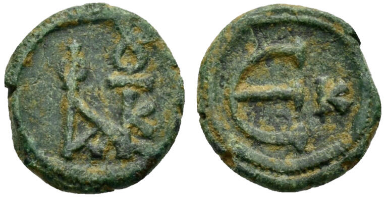 Eine bis dahin noch nicht gekannte Machtfülle einer römischen Kaiserin zeigen Münzen, die unter Iustinos II in den Jahren 560er und -70er Jahren geprägt wurden. Auf dem kupfernen Kleingeld war er gemeinsam mit seiner Ehefrau Gemahlin Sophia abgegbildet, die neben ihm auf gleicher Höhe saß und die selben Insignien wie er trug. Auf der Münze des Monats Mai geht die Symbiose noch weiter: Auf den Pentanummi-Stücken werden die Namen der Kaiserin und des Κaisers in einem Blockmonogramm verschmolzen. Wenn man die einzelnen Buchstaben liest, dann kommt man auf IVCTINOV KAI COΦIAC (»des Iustinos und der Sophia«). Das kaiserliche Ehepaar tritt als Einheit auf.
