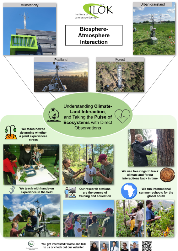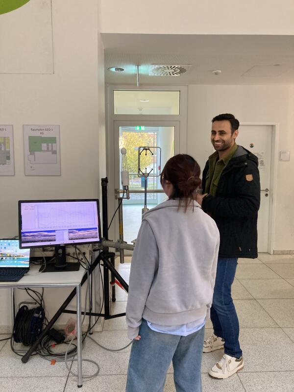 Auf dem diesjährigen Geo.Science.Day haben wir unsere Arbeitsgruppe vorgestellt. Neben einem Plakat, auf dem man unser Lehrangebot anschauen konnte, hat unser Postdoc Dr. Toprak Aslan einen kleinen Eddy-Kovarianz-Turm, an dem Besucher die Fluktuationen im CO2-Gehalt der Luft beobachten konnten.