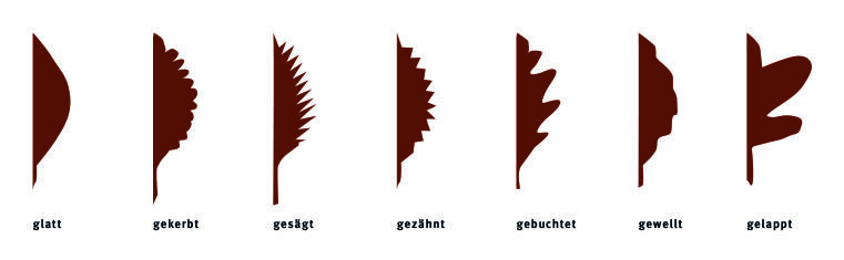 Blatt: wechselständig, 3 bis 6 rundliche Lappen, tiefgrün, Blattunterseite hellgrün, kurzer Blattstiel