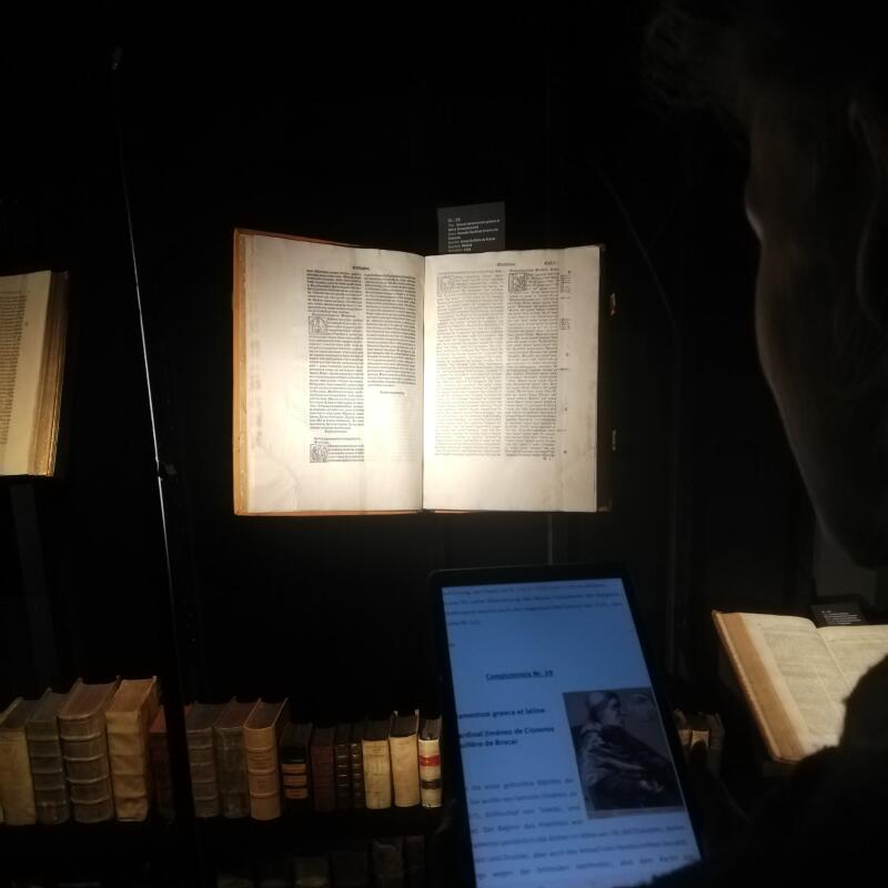 Besucherin mit Tablet© Bibelmuseum Münster
