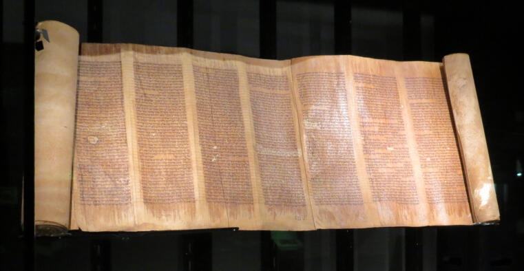 Die Tora (wörtliche Übersetzung aus dem Hebräischen: "Lehre") umfasst die fünf Bücher Mose. Im jüdischen Gottesdienst werden nur handgeschriebene Torarollen benutzt, die der Schreiber nach sehr strengen Regeln anfertigen muss. Die Vorschriften für die Schreiber haben sich seit dem frühen Mittelalter nicht geändert und sind im Talmud festgelegt. Kein Buchstabe, kein Wort, kein Satz darf ein Toraschreiber beim Anfertigen der Tora aus dem Gedächtnis schreiben, sondern Buchstabe für Buchstabe muss er die Torarolle von der Vorlage korrekt abschreiben. Verzierungen des Textes sind in einer Torarolle nicht erlaubt. Insgesamt bestehen die fünf Bücher Mose aus zweihundert Spalten. Für eine vollständige Torarolle werden 40 Pergamentblätter benötigt und zusammengenäht. Die Nahtstellen sind bei dem abgerollten Teil des Exponats gut zu erkennen.