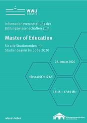 Auf unserer Homepage können Sie sich umfänglich über das bildungswissenschaftliche Studium und dessen Organisation an der Universität Münster informieren. Über das Navigationsmenü oder die nachfolgenden Links finden Sie zu den gewünschten Reitern. Wir freuen uns über Ihr Interesse.