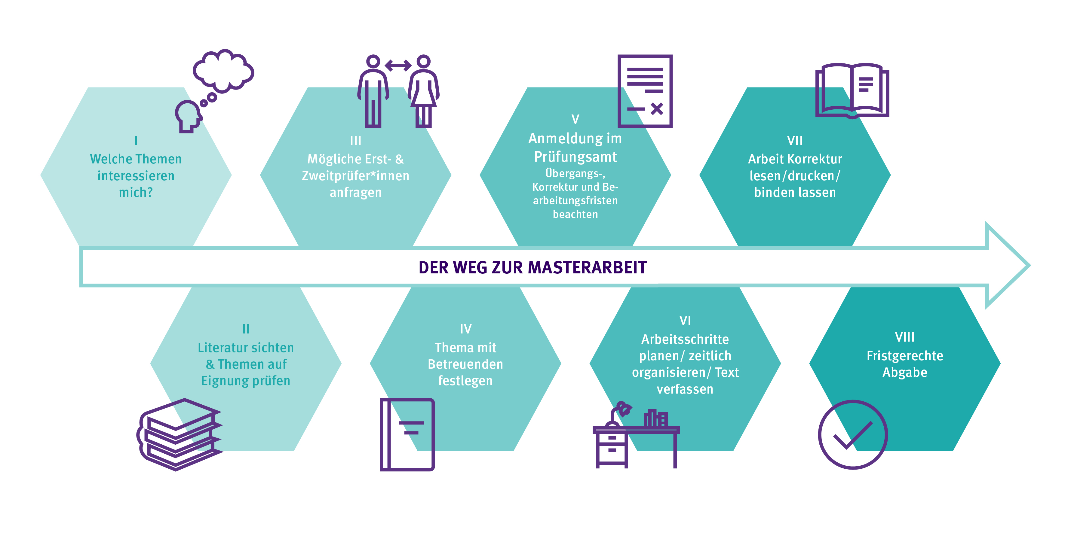 Zentrale Informationen und Dokumente zur Masterarbeit (z. B. Einreichung, Antrag auf Ausstellung der Abschlussdokumente, Rechenbeispiele) finden Sie auf den Seiten des Prüfungsamts.