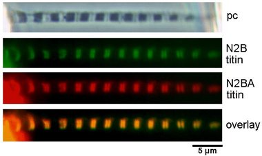 Linke, W.A., D.E. Rudy, T. Centner, M. Gautel, C. Witt, S. Labeit & C.C. Gregorio (1999) I-band titin in cardiac muscle is a three-element molecular spring and is critical for maintaining thin filament structure. J. Cell Biol. 146:631-644. pdf available free from publisher.