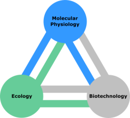 © IMMB In our research we investigate selected aspects of bacterial ecology and physiology with the goal of establishing novel biotechnological applications. Our research is focussed on two aspects of bacterial ecophysiology: bacterial metabolism and bacterial cell-cell interactions. Regarding metabolism, we investigate novel metabolic pathways for the transformation of natural and synthetic compounds. Regarding cell-cell interactions, we investigate bacterial cell-aggregation and biofilm formation as well as chemical interactions of bacteria (chemical communication, antibiosis). We want to transfer ecophysiological knowledge to biotechnology for improving bacterial biocatalysis and biodegradation processes as well as for finding novel compounds that influence bacterial growth and metabolism.