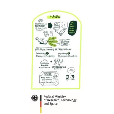 In the i-ProDex project, the aim is to find an alternative process for producing clinical dextran. Dextran is a polysaccharide that is naturally produced by lactic acid bacteria and, at a specific molecular weight, is used in clinical applications, for example as a substitute for blood plasma. The conventional production process is characterized by a high volume of environmentally harmful waste and low productivity. The goal of i-ProDex is to develop innovative and efficient processes for producing clinical dextran, taking into account environmental considerations as well as meeting the product specifications required for clinical use. The project is funded by the BMBF under the number 03WIR5305B and supported by the WIR!2 alliance.
