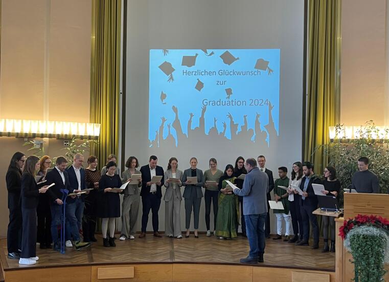 Promotionsfeier im Schloss© Uni - MSAm Freitag, 13. Dezember 2024 wurden 22 Promovierende – 12 Doktorandinnen und 10 Doktoranden – im Rahmen der Promotionsfeier des Fachbereichs Biologie zur Doktorin/zum Doktor der Naturwissenschaften ernannt.
