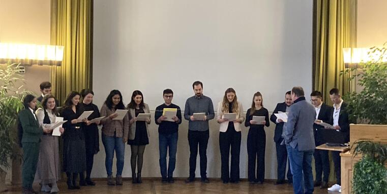 Graduation ceremony in the castle© Uni MSOn Friday, February 7th 2024, 14 doctoral candidates – 8 female and 6 male doctoral candidates – were awarded doctorates in natural sciences at the graduation ceremony of the Department of Biology.