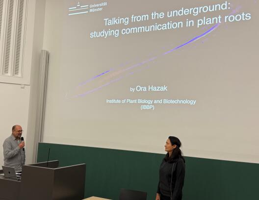 Junior TT Professor Dr. Ora Hazak gave her inaugural lecture on Wednesday, November 12, 2025, entitled “Talking from the underground: studying communication in plant roots.” The lecture took place in a full auditorium before her colleagues, students and guests. After providing an engaging insight into the underground root life of the tomato plant, Dr. Hazak answered questions from the audience. Afterwards, the Junior Professor invited everyone to join her in a toast to celebrate the successful afternoon.