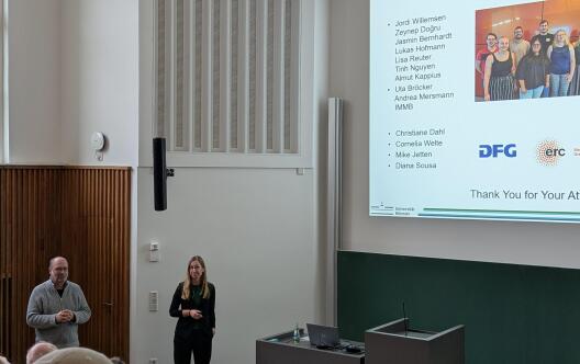 On Wednesday, November 19, 2025, Professor Julia Kurth gave her inaugural lecture entitled “Physiology of anaerobic microorganisms: from molecular mechanisms to environmental impact” to her colleagues, students, and guests in the lecture hall at Schlossplatz 4. From gases to microorganisms to a brief excursion into the world of Marvel comics, the lecture covered a wide range of topics, and the interested audience had the opportunity to engage in a Q&A session with Professor Kurth. Afterward, the professor invited everyone to raise a glass to a successful afternoon.