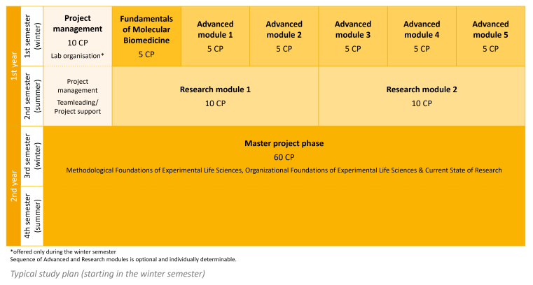 - obligatory module ‚Fundamentals of Molecular Biomedicine’ (four weeks, 5 credit points)