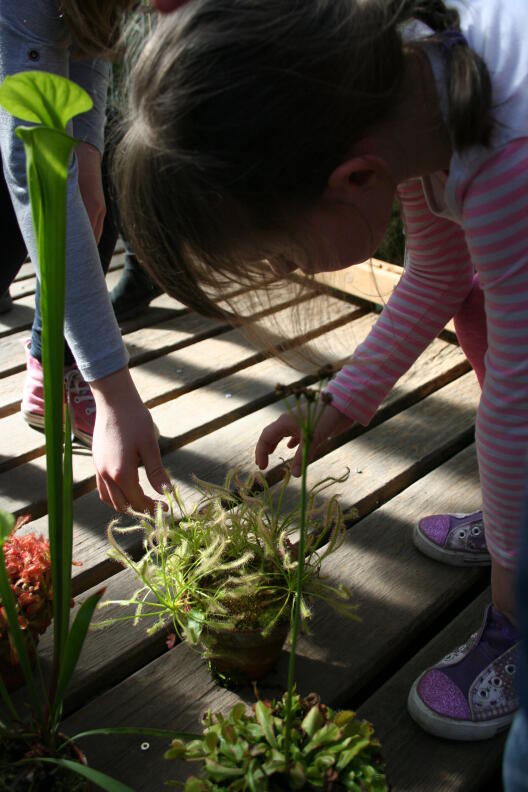 Während der Führung durch den Garten können die Kinder durch die Steinschlucht klettern, das Farn-Tal erkunden und sich unter dem Wunschtor etwas wünschen. Ein Highlight sind die fleischfressenden Pflanzen zum Anfassen und die Lebenden Steine.