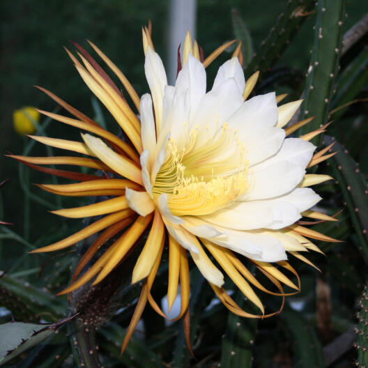 Diese erstaunliche Kakteenart trägt wunderschöne Blüten, die einen Durchmesser von bis zu 30 cm erreichen können. Doch man muss Glück haben, um sie im richtigen Moment zu erwischen, denn die Blütenknospe dieser faszinierenden Pflanze öffnet sich genau eine Nacht lang. Ihr Gattungsname Selenicereus weißt auf diese besondere Blütezeit hin: Er setzt sich aus dem griechischen Wort selene für Mond und dem lateinischen Wort cereus für Kerze oder Säulenkaktus zusammen. Er bedeutet also so viel wie "Mondkerzenkaktus" oder "bei Mondschein blühend". Ursprünglich stammt die Königin der Nacht aus Mexiko und dem Süden der USA. Die Größe und cremeweiße Farbe der Blüten könnten darauf hindeuten, dass die Pflanze von Fledermäusen bestäubt wird. Wissenschaftlich geprüft ist diese Annahme jedoch noch nicht. Ein paar Geheimnisse hält diese mondbeschienene Königin also noch verborgen.