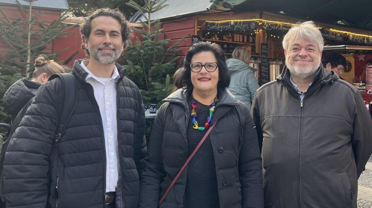 In the historic centre of Münster, in front of the historic Kiepenkerl monument, three Brazilian researchers from leading research institutions met on a Thursday afternoon in a festive, Christmas atmosphere at Münster’s Christmas market: Prof. Dr José Carlos Vaz, University of São Paulo (USP); Prof. Dr Ana Larissa Marciotto Oliveira, Federal University of Minas Gerais (UFMG); and Prof. Dr Daniel Villela, Fundação Oswaldo Cruz (Fiocruz). All three are holders of the Brazil Chair, which is coordinated by the Brazil Centre of the University of Münster and funded by CAPES (Brazilian Federal Agency for Support and Evaluation of Graduate Education), a funding agency affiliated with the Brazilian Ministry of Education.