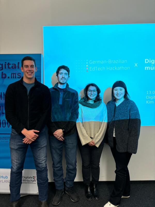 The visit to Münster began with a meeting at the REACH - EUREGIO Start-up Center, a centre for the promotion of start-ups, followed by a presentation of their project at the Digital Hub münsterLAND. The four-person team gained valuable insights into the German start-up scene at both institutions. The team also visited the Institute of Geoinformatics, where they gained new perspectives for the further development of the Leko project in a very productive exchange with various questions and suggestions for the project.