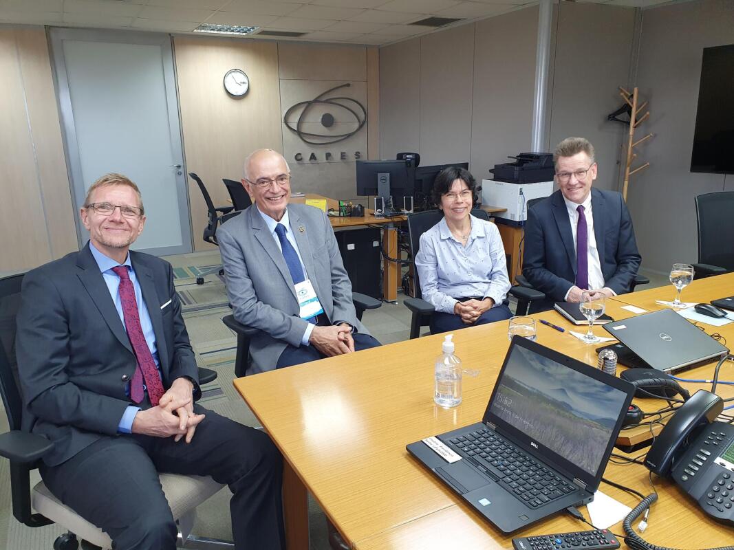 O Reitor Johannes Wessels informou sobre os estreitos laços entre a WWU e a Universidade de Twente, que por sua vez coopera intensamente com a Universidade de São Paulo - e defendeu a promoção de projetos de pesquisa tri-nacionais. Em 2011, a WWU firmou um acordo institucional com a Capes, que foi prorrogado no ano passado. Um elemento central deste acordo é o estabelecimento de uma "Cátedra Brasil" na WWU para expandir a cooperação entre pesquisadores individuais, criar redes e melhorar a visibilidade de notáveis pesquisadores brasileiros na Alemanha. Em termos concretos: a cátedra financia 18 meses de estadia em Münster, que opcionalmente podem ser divididos em três visitas de seis meses cada. Além disso, há financiamento para um estudante de doutorado e um pós-doutorando. Na atual chamada, cinco cientistas da WWU são elegíveis como anfitriões, incluindo o cientista político Norbert Kersting e o médico Martin Götte. "Estamos felizes e prontos a qualquer momento para apoiar os impressionantes esforços da WWU em direção a mais colaborações com instituições científicas brasileiras", enfatizou Mercedes Bustamante.