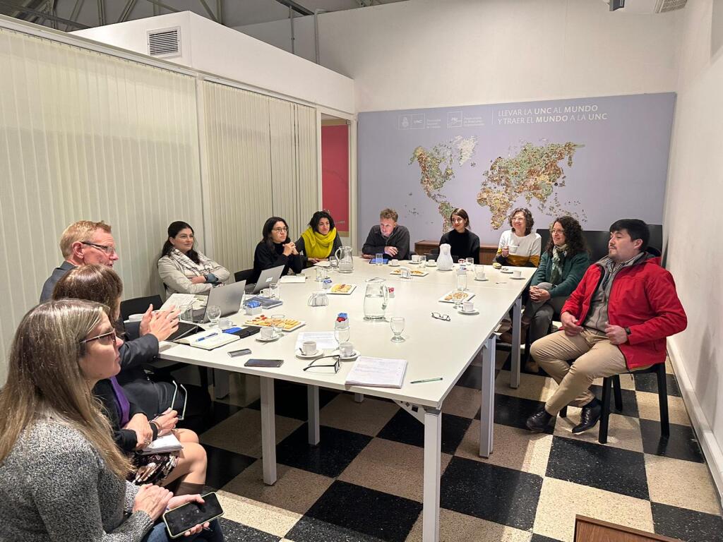 Por fim, a delegação se dirigiu a Córdoba, onde foi fundada a universidade mais antiga do país: a Universidade Nacional de Córdoba (UNC). A reunião no Escritório Internacional contou com a presença de todos os parceiros de colaboração da Universidade de Münster que o Centro Brasileiro conseguiu identificar em sua pesquisa anterior. Cinco pesquisadores, de áreas que vão desde Ciências Farmacêuticas até Ciências Políticas, compartilharam suas experiências em e com Münster e também foram informados sobre oportunidades para manter seu engajamento com seus colegas. Por exemplo, oportunidades de financiamento como o Programa WIRE ou o projeto COFUND na Universidade de Münster podem ajudar a promover ainda mais Münster como destino para estadias de pesquisa na UNC e ampliar a colaboração para outras áreas. Na reunião, a discussão também abordou a possibilidade de fomentar doutorados em cotutela, bem como potenciais áreas de colaboração, como Administração e Humanidades.