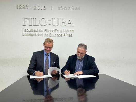 Foram realizadas três visitas no total: a primeira, à Universidade de Buenos Aires (UBA), a principal universidade argentina e a maior da América Latina, com um impressionante número de cinco laureados com o Nobel. O encontro ocorreu na Faculdade de Filosofia e Letras (Filo) e, na ocasião da visita, o Decano co-assinou o primeiro acordo entre a Universidade de Münster e sua faculdade na UBA. A parceria é muito celebrada pelo Departamento de História/Filosofia de Münster, em particular pela Prof. Dra. Sarah Albiez-Wieck, Professora de História da América Latina, que mantém contato que mantém contatos com esta instituição há algum tempo. Este acordo é um passo importante para o aprofundamento da colaboração entre as duas universidades, proporcionando uma estrutura institucional para atividades de intercâmbio. Além disso, o chefe do Escritório Central de Relações Internacionais da UBA demonstrou grande interesse em expandir a colaboração para toda a universidade, o que também é o objetivo do Centro Brasileiro, para que pesquisadores de outras faculdades da Universidade de Münster - incluindo as ciências naturais e exatas - possam ser apoiados em sua cooperação com cientistas da UBA.