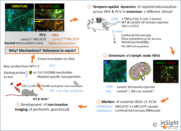 Combined with single cell RNA sequencing of omental vessels, this will identify marker molecules (3) for the development of non-invasive imaging strategies (4) for assessing acute peritoneal inflammation and, potentially, also for its manipulation.