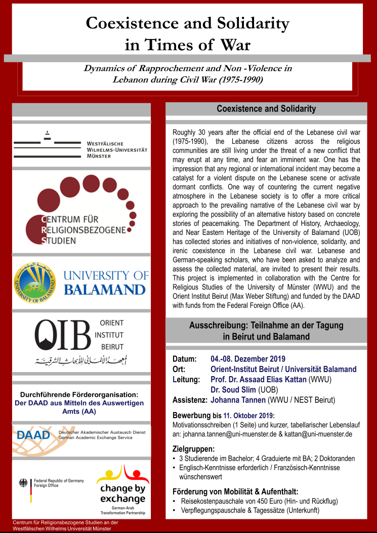 Das CRS kooperiert insbesondere mit den Fachbereichen Geschichte und Philosophie (Fachbereich 8), Philologie (Fachbereich 9), der Evangelisch-Theologischen Fakultät (Fachbereich 1) und der Katholisch-Theologischen Fakultät (Fachbereich 2) sowie mit dem Zentrum für Islamische Theologie (Fachbereich 16), dem Exzellenzcluster ‚Religion und Politik‘, dem ‚Centrum für Religion und Moderne‘ (CRM) sowie anderen Einrichtungen der Religionsforschung an der Universität Münster.