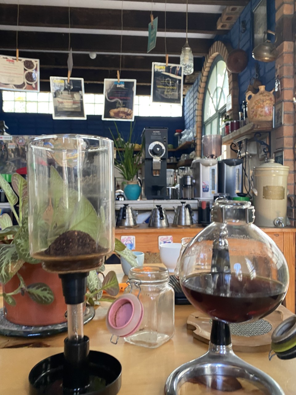 Darüber hinaus kann ich das Café „Art Capje“ mehr als nur empfehlen. Ein Café, das seine Pforte nur nach Terminabsprache öffnet. Marco und Gabriela arbeiten eigentlich als Ingenieur/Architekt:innen, sind nebenbei künstlerisch aktiv und bauten ihr eigenes Zuhause und Garten (sehr rar in Tegucigalpa) zum Café aus. Marco kommt aus einer Familie, die seit Generationen im Kaffeeanbau tätig war. In San Salvador studierte er zusätzlich alles rund um die Kunst des Kaffees. Auf ihren Reisen lernten die beiden viele neue Kaffeeprozeduren kennen und brachten zahlreiche verschiedene Filtermethoden mit. Der Kaffee stammt ausschließlich aus ökologischem Anbau und fast nur aus Honduras, die übrigen Sorten kommen aus Guatemala und Nicaragua. Wenn man zu den beiden zum Kaffee trinken vorbeikommt, fühlt sich die Kaffeeprozedur (!) wie ein Besuch und ein Stückchen Urlaub in ihrem gemütlichen, warmen, familiären, einzigartigen Zuhause an.