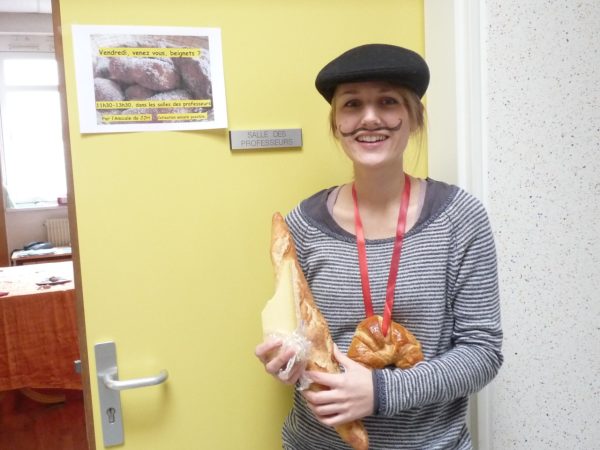Auch am Lycée sind viele sehr nette Kollegen, die mich einladen oder gemeinsame Aktivitäten planen. Super fand ich, dass sich viele Lehrer nicht gescheut haben, sich am letzten Schultag vor den Winterferien (Faschingszeit) zu verkleiden und verkleidet zum Unterricht zu gehen. Ein Englischlehrer ist sogar im Schottenrock und dudelsackspielend in die Schule und zum Unterricht marschiert! Ich bin als Pariser gegangen 😉