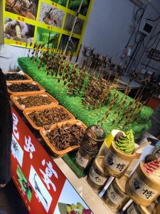 In Zibo wurde ich random von zwei Jungs angesprochen, die ihr Englisch austesten wollten (das passiert öfters mal). Wir kamen gut ins Gespräch und sie nahmen mich den gesamten Tag über mit durch die Stadt. Auf einem Markt probierte ich frittierte Zikaden. Es gab auch Spinnen und Skorpione am Spieß. Jedoch ist dabei ausdrücklich zu sagen, dass dies NICHT eine normale Mahlzeit für Chinesen darstellt, wie es hierzulande oft gemeint wird. Es handelt sich viel mehr um ein Erlebnis für Touristen oder dient als Mutprobe.