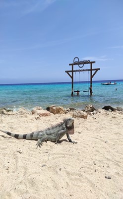 In Hinblick auf Landschaft, Flora und Fauna, bin ich immer wieder überrascht, vor allem, weil ich vieles auf meinen bisherigen Reisen noch nicht gesehen habe. Dazu zählen zum Beispiel Leguane, Schweine am Strand, wildlebende Flamingos, Pelikane, Meeresschildkröten, Papaya- und Mangobäume, Kokospalmen und sehr viele Kakteen.