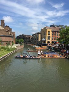 Ein weiteres Charakteristikum der Stadt ist der Cam River. Egal ob zum Punting (Stechkahn fahren), Rudern oder einem gemütlichen Spaziergang. Das Wasser lockt Menschen an und folgt man dem Fluss eine Weile findet man sich schnell im Grünen wieder und die Kühe grasen neben einem auf der Weide. Zudem ist alles durchzogen von Fahrradwegen, sodass man sich als Münsteraner nicht groß umgewöhnen muss, sondern sich einfach weiterhin auf seine Leeze schwingt um von A nach B zu kommen.