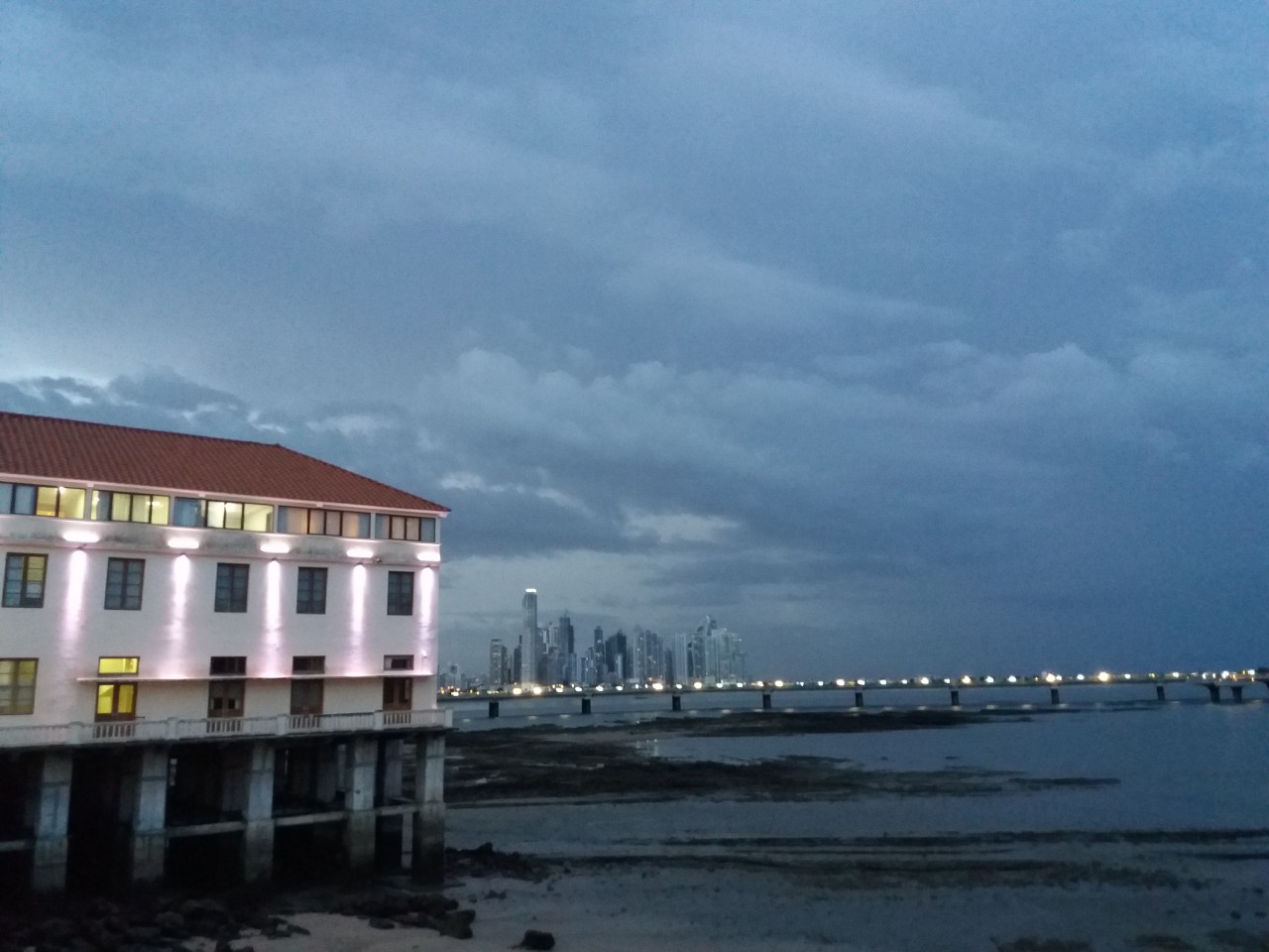 Da sind die einzelnen Töne der Trompete und die Menschenleere eine genugtuende Abwechslung. Der Himmel verwandelt sich zur Nacht, während Gewitterwolken den Horizont einbetten. Im Hintergrund erhellen die Blitze den pazifischen Ozean und paaren sich mit der erleuchtenden Skyline Panama-Citys. Gepaart mit dem Ambiente des Casco Viejos ist dieser Moment der erste, in dem man die Eindrücke der unglaublichen Panama City reflektieren kann.